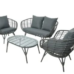 Op zoek naar een mooie, grijze loungeset? Dan hebben wij misschien wel dé perfecte tuinset: de Evora Loungeset Grijs – 145 x 80 x 83 cm! De loungeset bestaat uit vier onderdelen: twee losse stoelen, een tweezitsbank en een tuintafel. De tuinmeubelen zijn gemaakt van wicker. Dit materiaal is vrijwel onderhoudsvrij en heeft een mooie, natuurlijke uitstraling. Daarnaast kunnen wicker tuinmeubelen tegen allerlei weersomstandigheden én zijn wicker tuinmeubelen lichtgewicht. De stoelen en bank van de tuinset zijn voorzien van zachte kussens wat zorgt voor een fijn en comfortabel gevoel. De Evora loungeset is dé set om buitenshuis te kunnen ontspannen en relaxen. Laat die gezellige avondjes met familie en vrienden maar komen. Steek de barbecue maar alvast aan en laat die zomer maar komen!