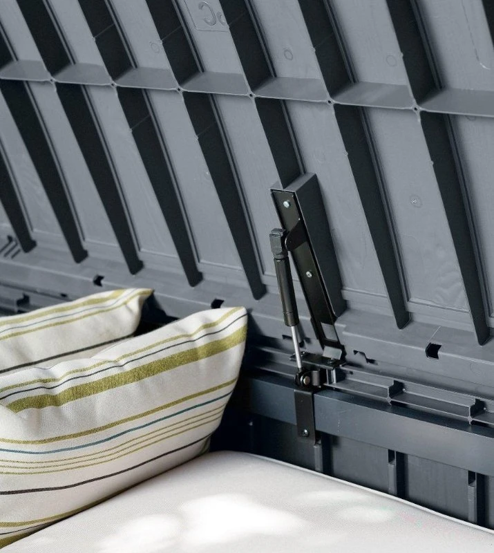 De Glenwood kunststof opbergbox van Keter is supersterk, ultrastijlvol, hij kan ook dienen als een bank voor twee volwassenen en heeft een opslagcapaciteit van bijna 400 liter. Het is uitgerust met een praktisch automatisch openingsmechanisme dat gemakkelijk openen mogelijk maakt, zelfs wanneer je je handen vol hebt. Het is gemaakt van een duurzame, weerbestendige kunststof met een chique uitstraling van houtwerk. Een opgeruimde tuin begint bij de aanschaf van een praktisch, goeduitziende oplossing, gebruik de Keter Glenwood als tuinkussenbox, kussenbox of algemen opbergbox voor je tuinaccessoires!